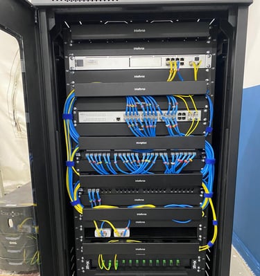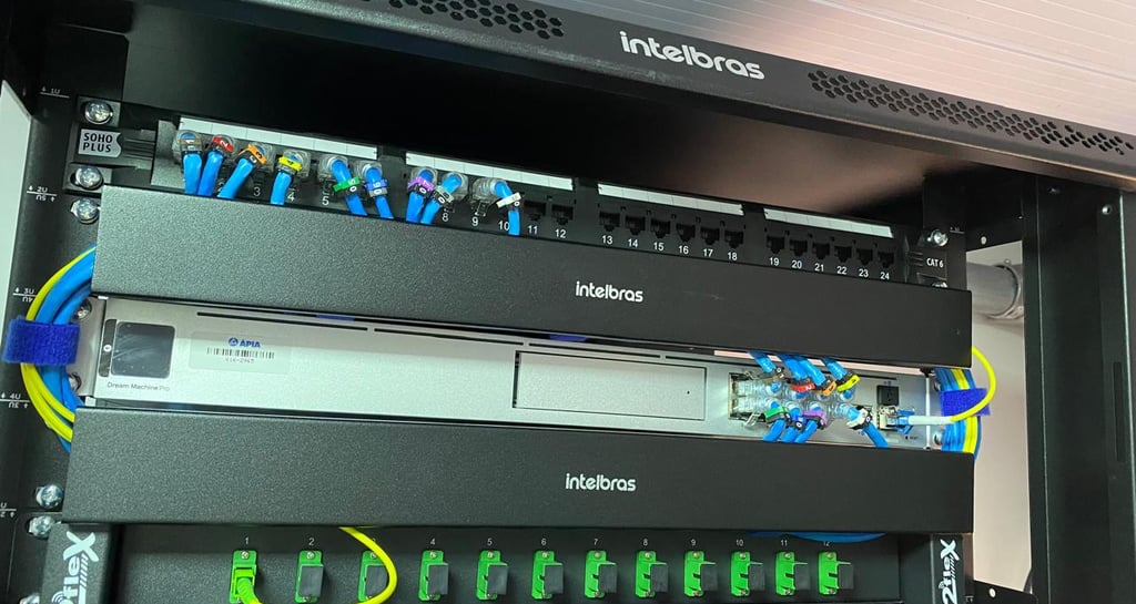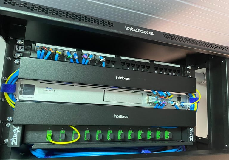 Cabeamento estruturado, redes em fibra óptica e servidores personalizados.